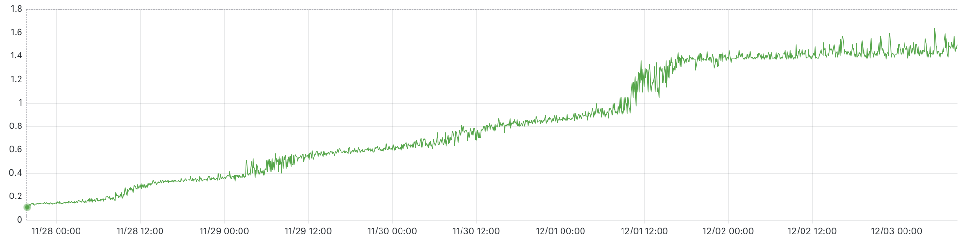 そして、大量の .db ファイルが存在する状態で /metrics にアクセスすると、すべての .db ファイルを読み込んで集約するため、非常にレスポンス時間が長くなりますし、CPU/RAM等のリソースも大量に消費します。